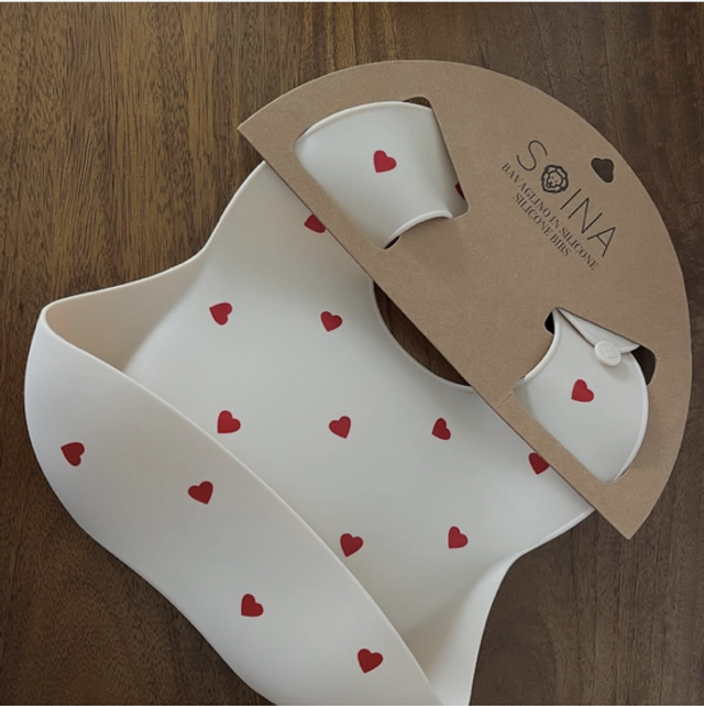 Bavoir en silicone parsemé de cœurs, pour des repas rempli d’amour
